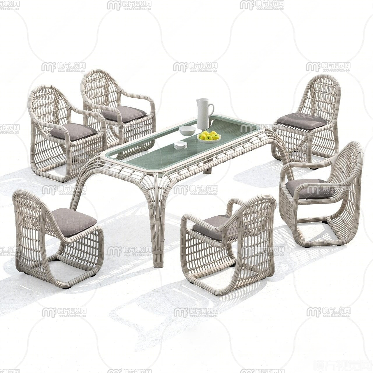 户外藤编桌椅组合3D模型(ID:0023282)