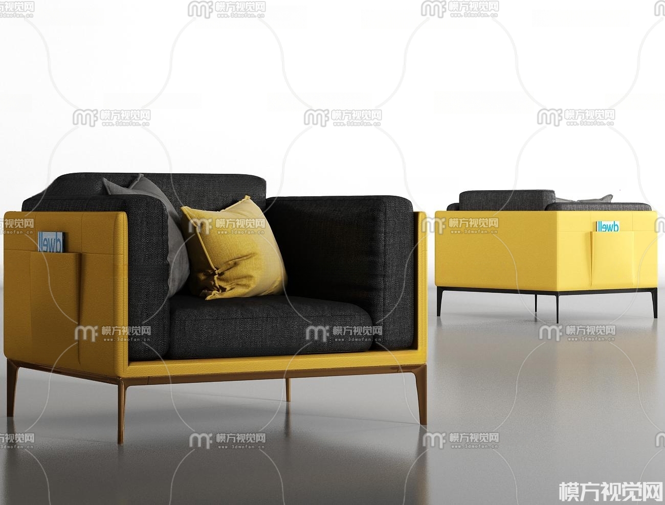 现代黄色布艺单人沙发3D模型(ID:0023292)