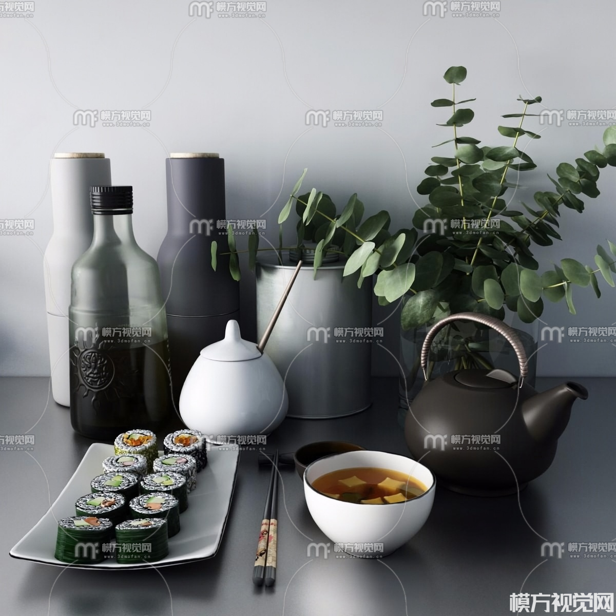 餐具 食物 花艺3D模型(ID:0023300)