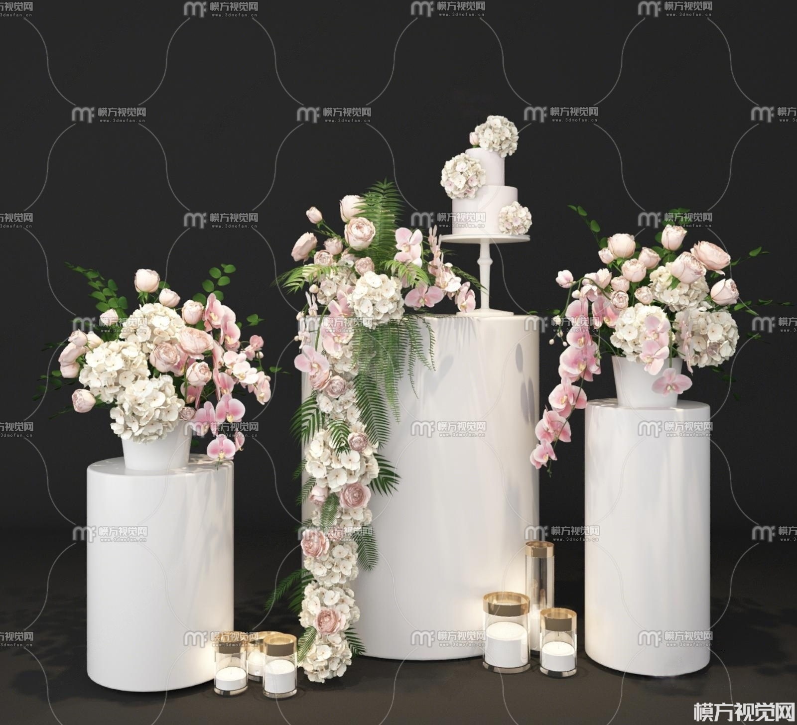 现代婚庆蝴蝶兰蜡烛摆件3D模型(ID:0023327)