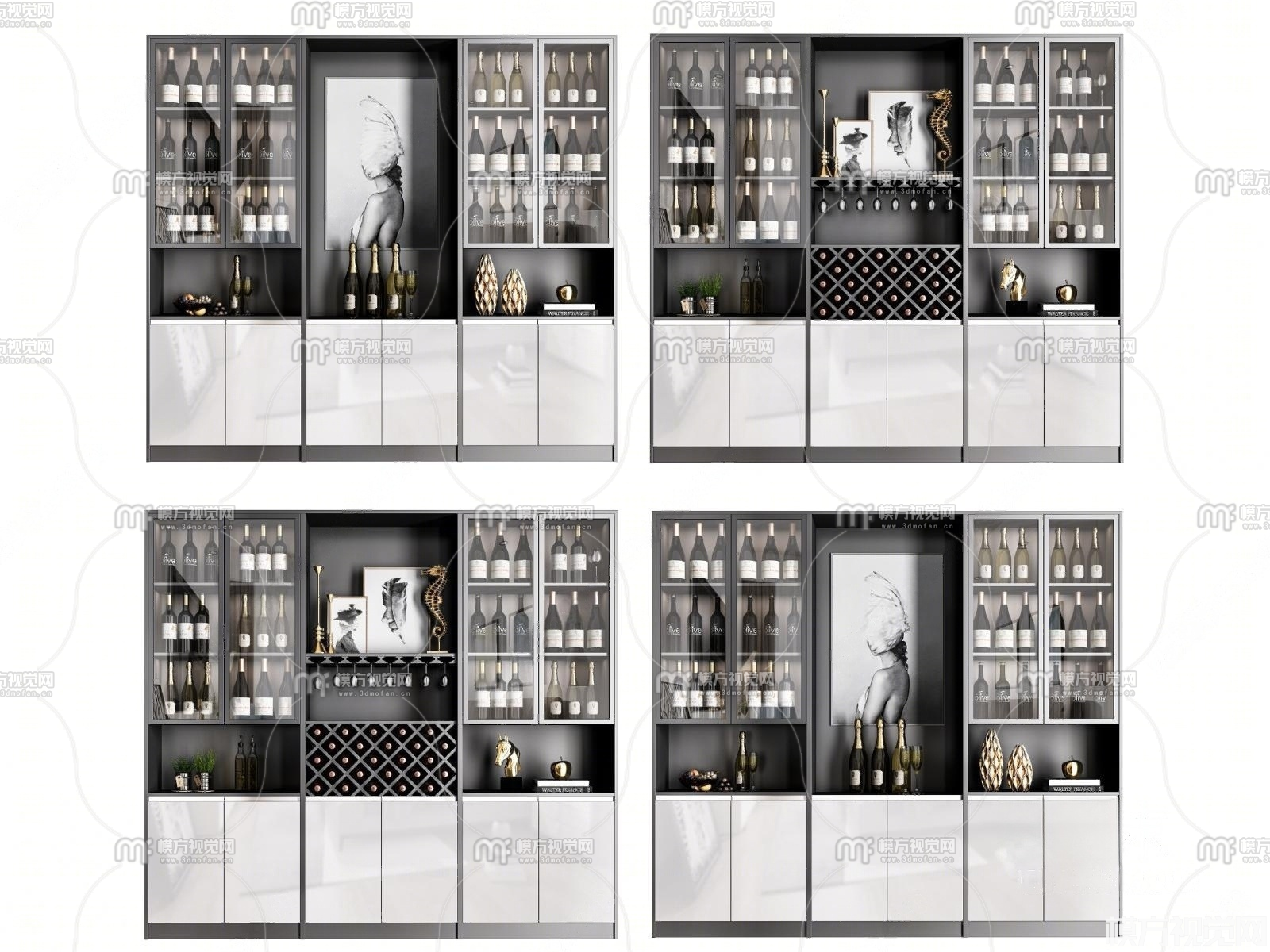 现代简约实木酒柜组合3D模型(ID:0023383)