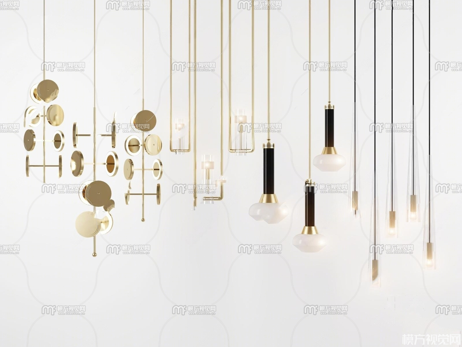 现代金属玻璃吊灯组合3D模型(ID:0023409)