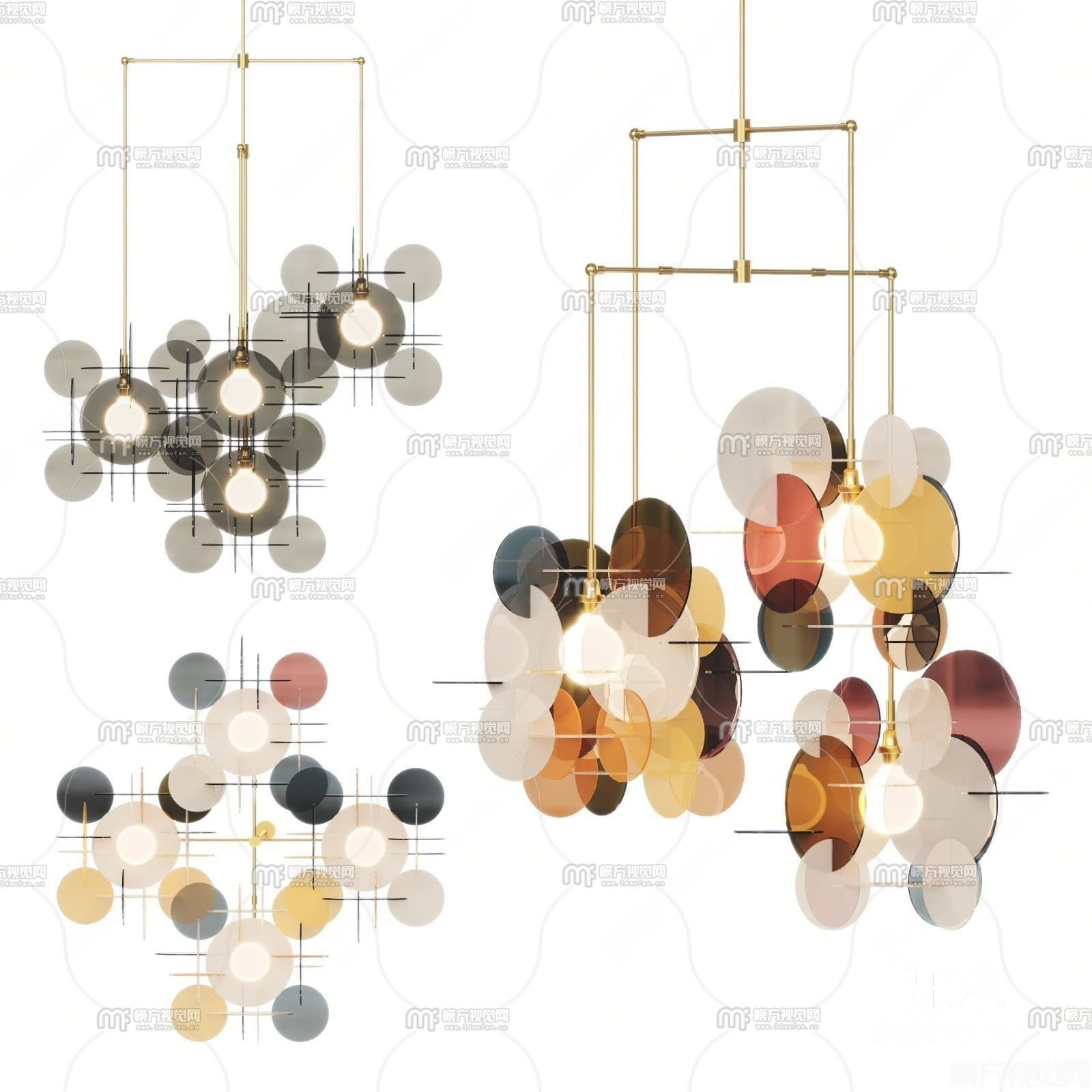 现代金属玻璃片彩色吊灯3D模型(ID:0023411)