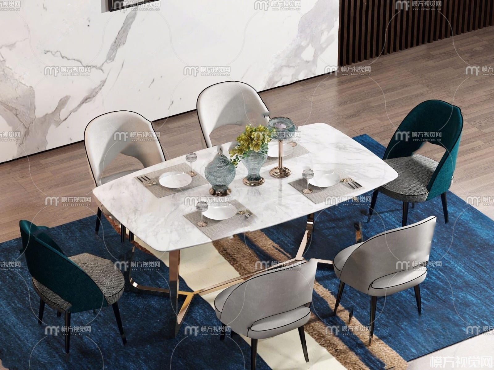 现代餐桌椅组合3D模型(ID:0002343)