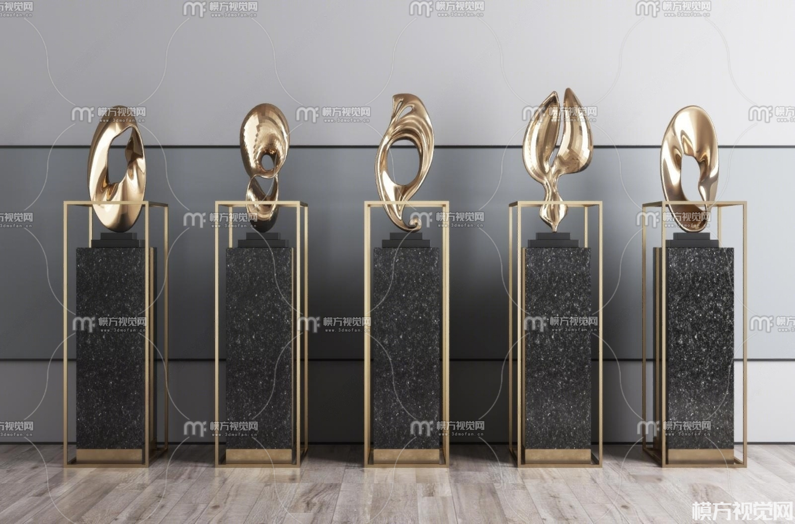 现代金属装饰摆件组合3D模型(ID:0023451)