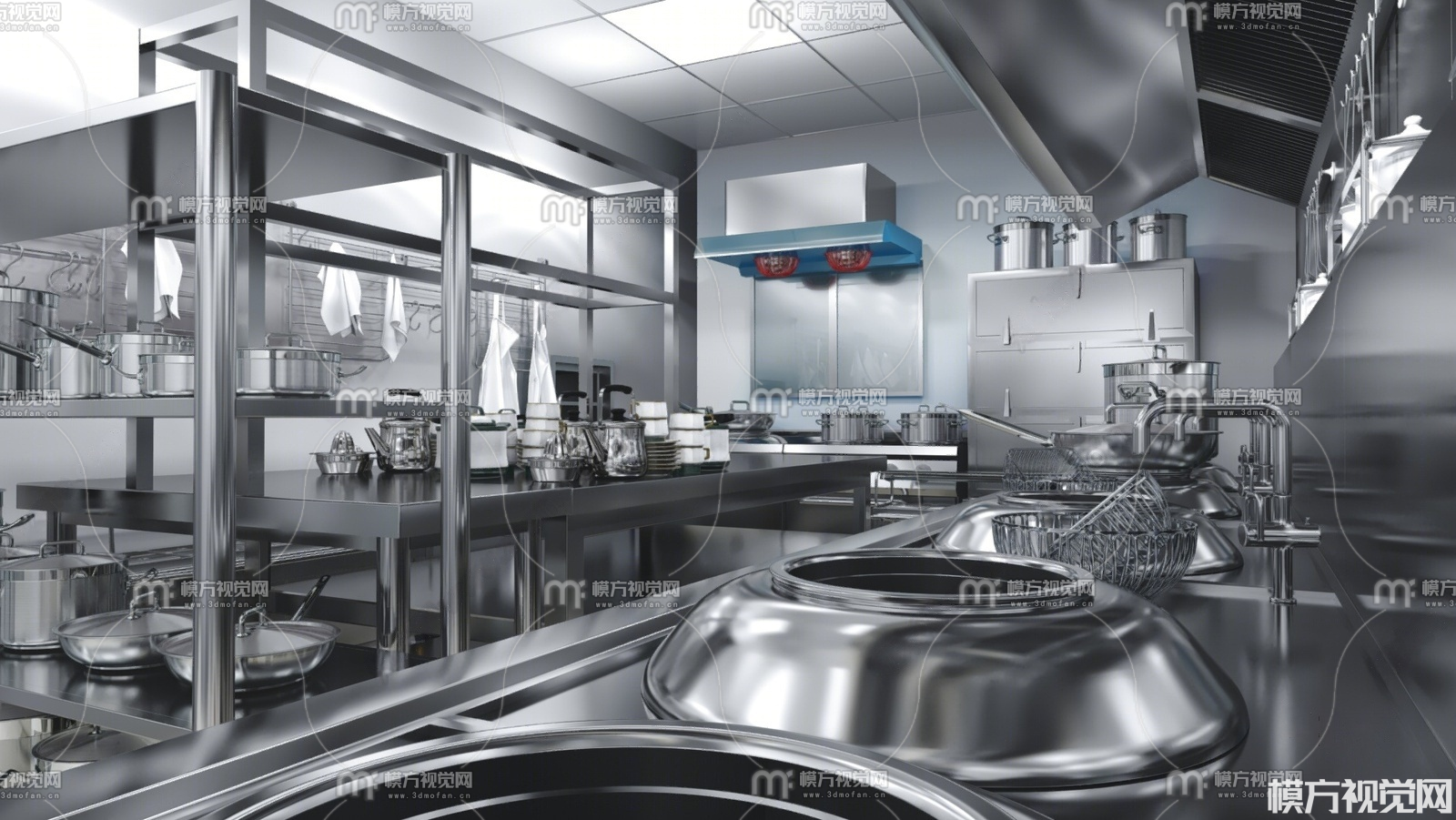 现代酒店厨房 后厨3D模型(ID:0023470)