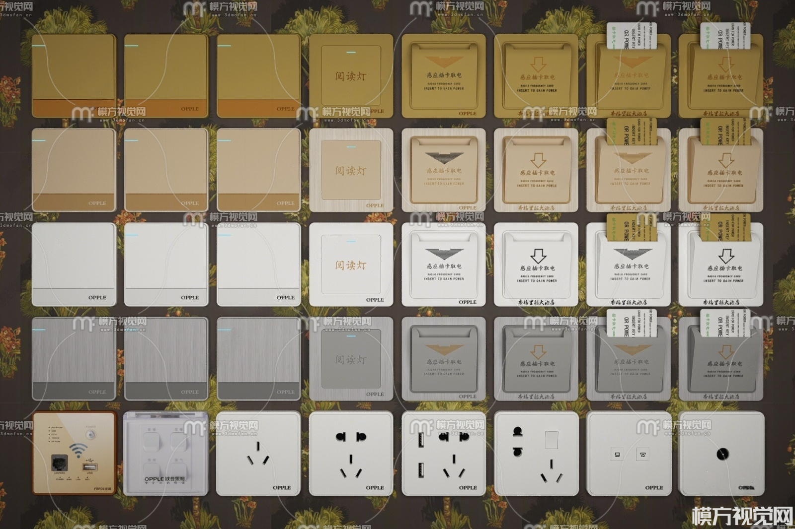 现代开关 插座组合3D模型(ID:0023489)
