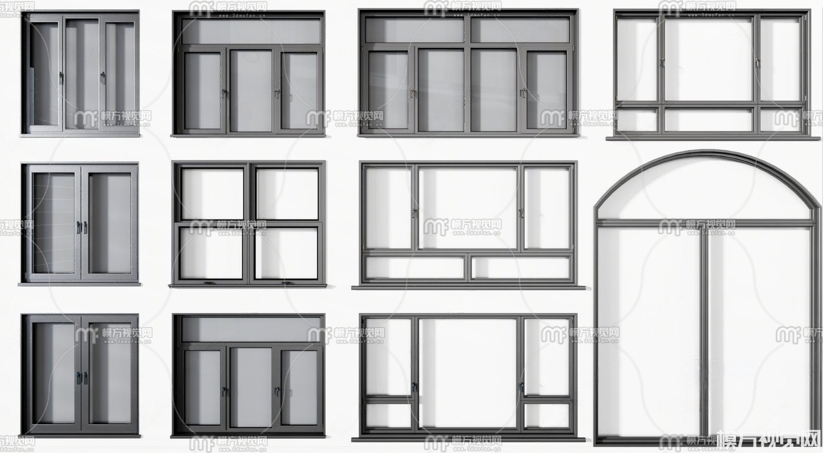 现代铝合金窗户3D模型(ID:0023548)