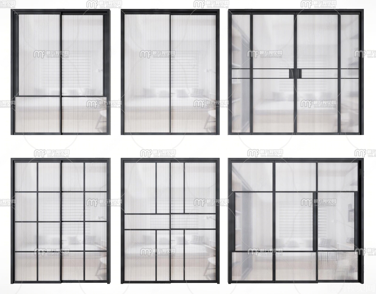 现代磨砂玻璃推拉门3D模型(ID:0023636)