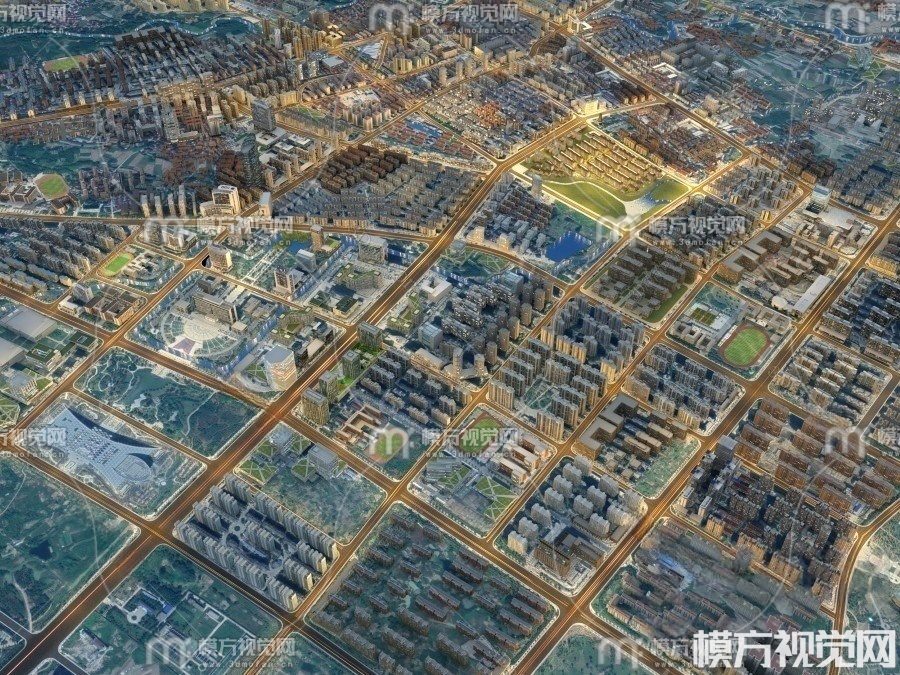 现代城市鸟瞰规划3D模型(ID:0023659)
