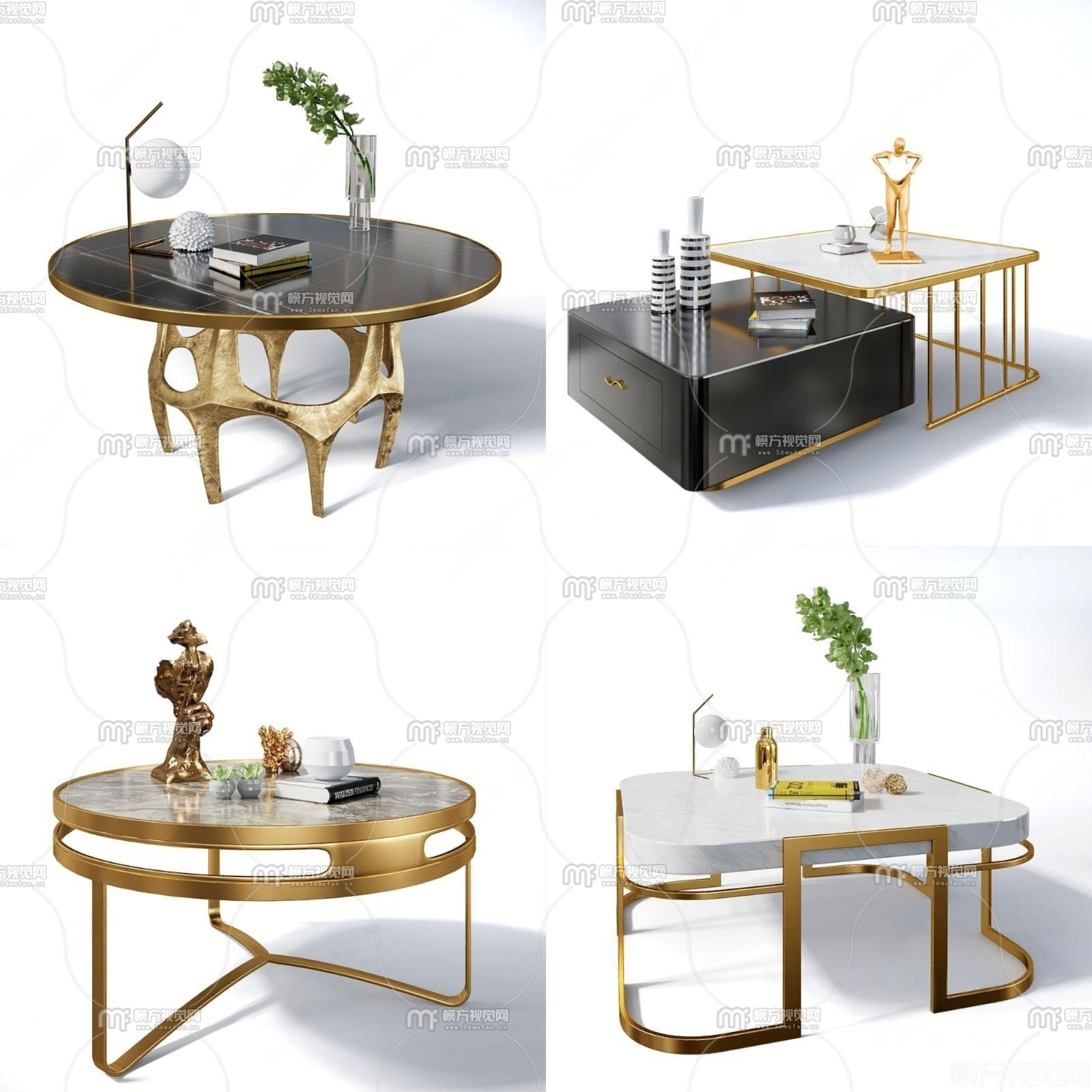 现代轻奢茶几组合3D模型(ID:0023781)