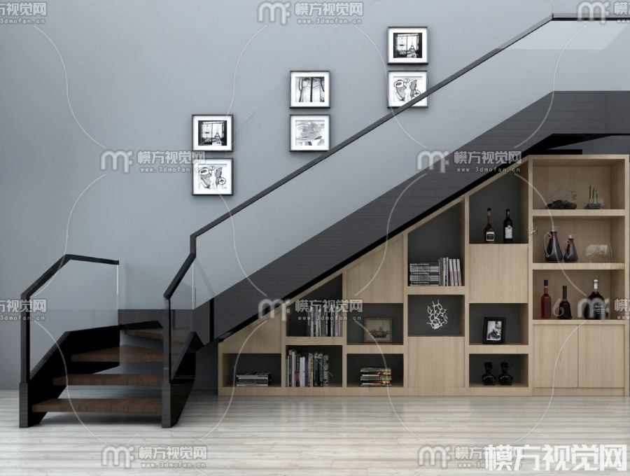 现代楼梯 装饰柜3D模型(ID:0002379)