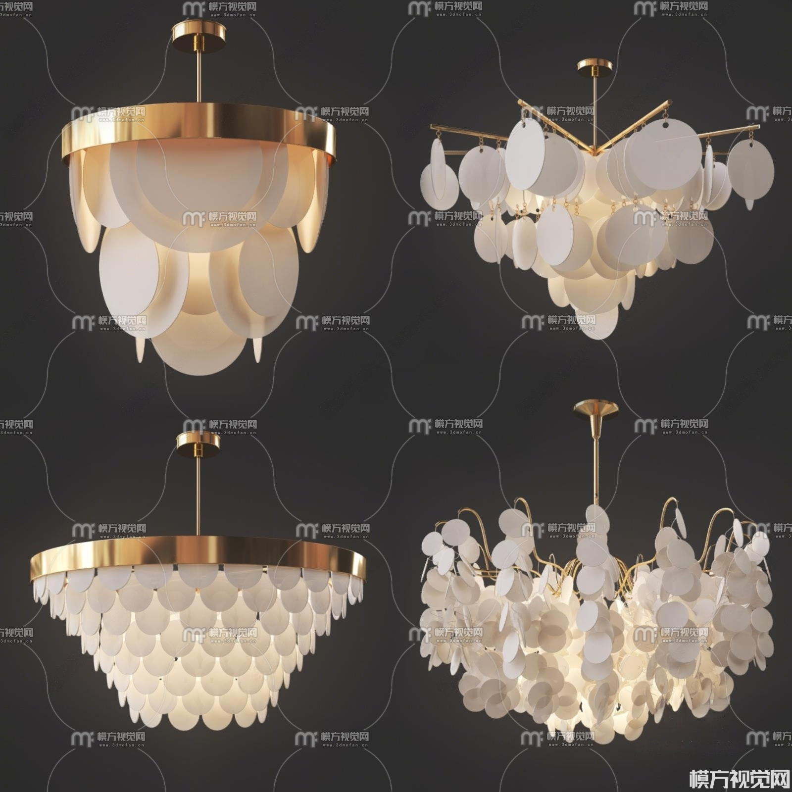 现代轻奢金属吊灯组合3D模型(ID:0023801)