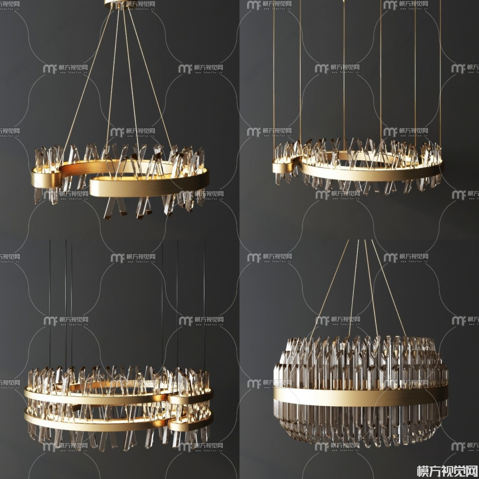 现代轻奢金属吊灯组合3D模型(ID:0023807)