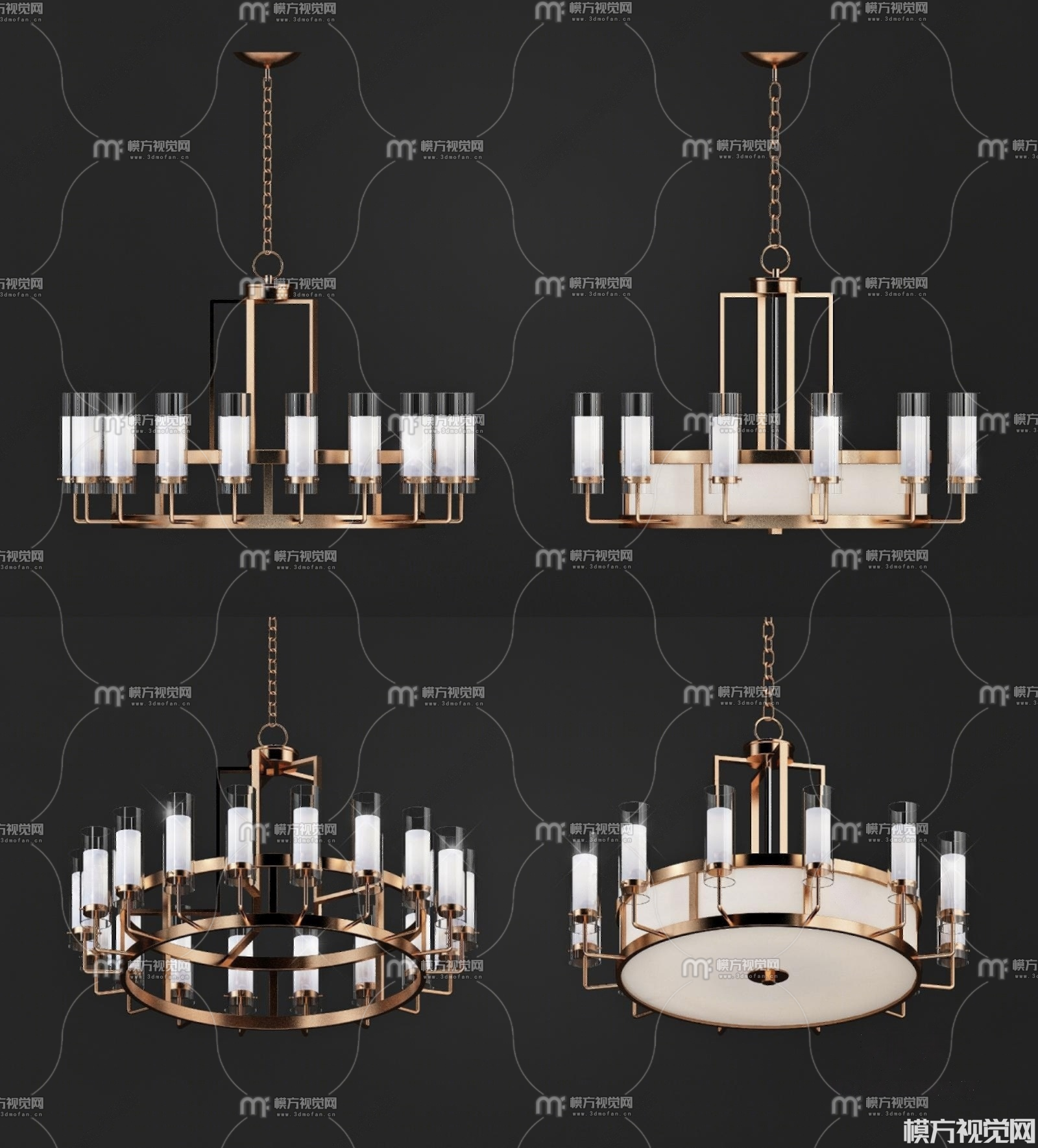 现代轻奢金属吊灯组合3D模型(ID:0023808)