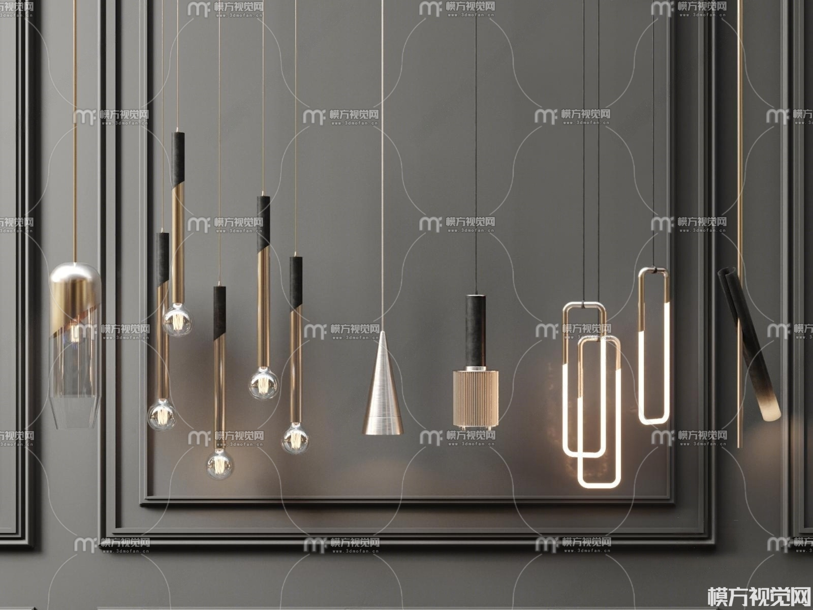 现代轻奢金属吊灯组合3D模型(ID:0023809)