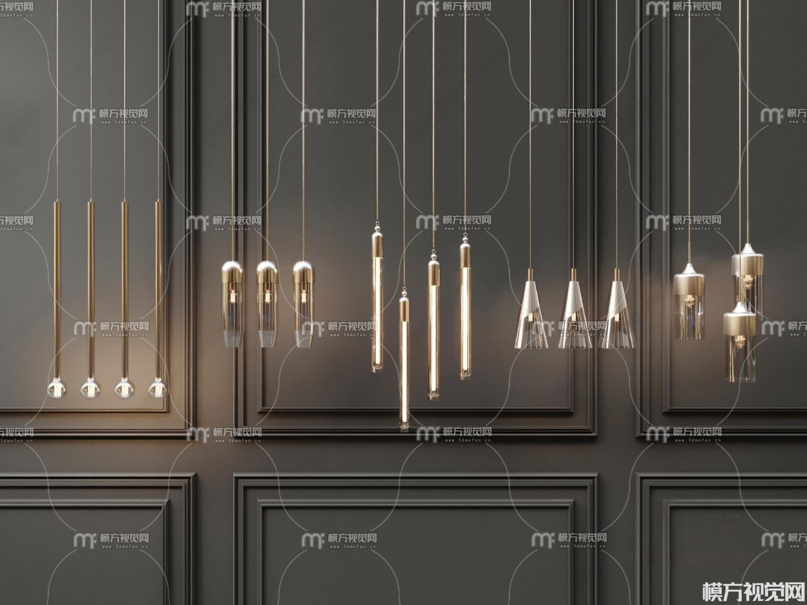 现代轻奢金属吊灯组合3D模型(ID:0023810)