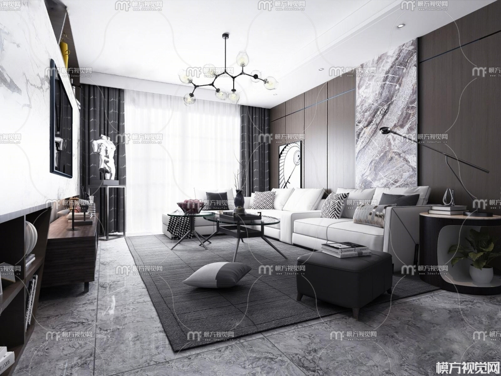 现代轻奢客厅3D模型(ID:0023823)