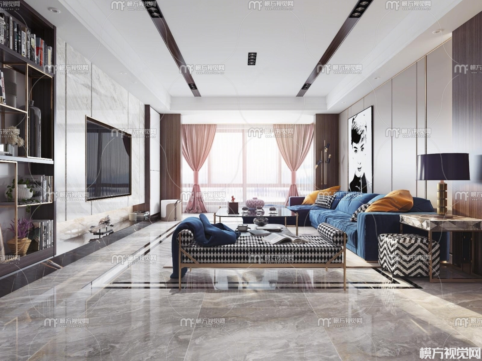现代轻奢客厅3D模型(ID:0023824)