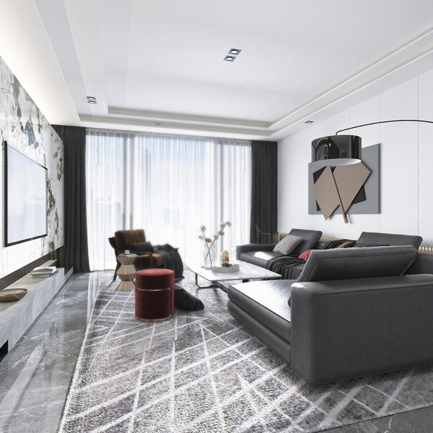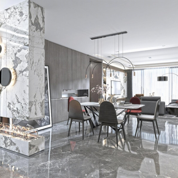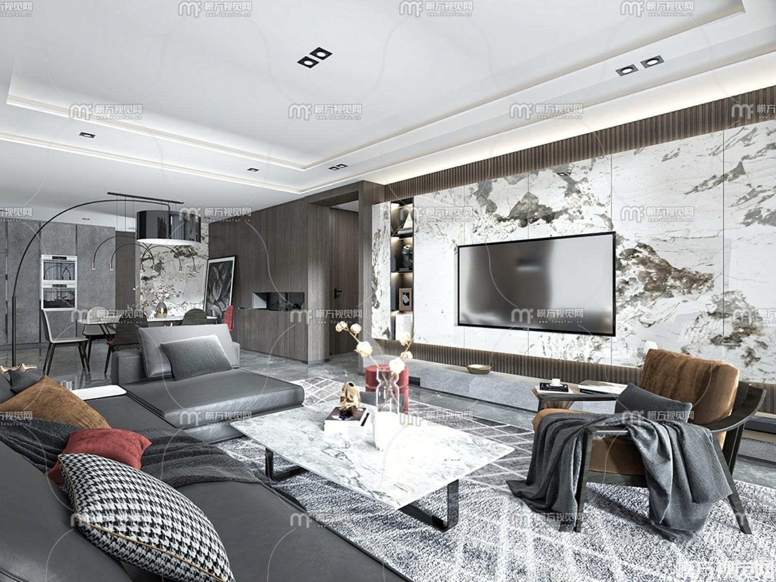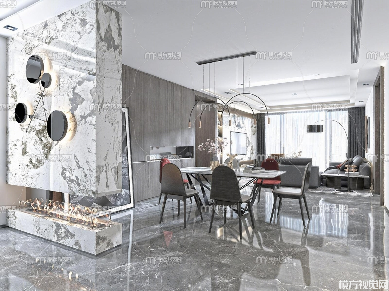 现代轻奢客厅餐厅3D模型(ID:0023852)