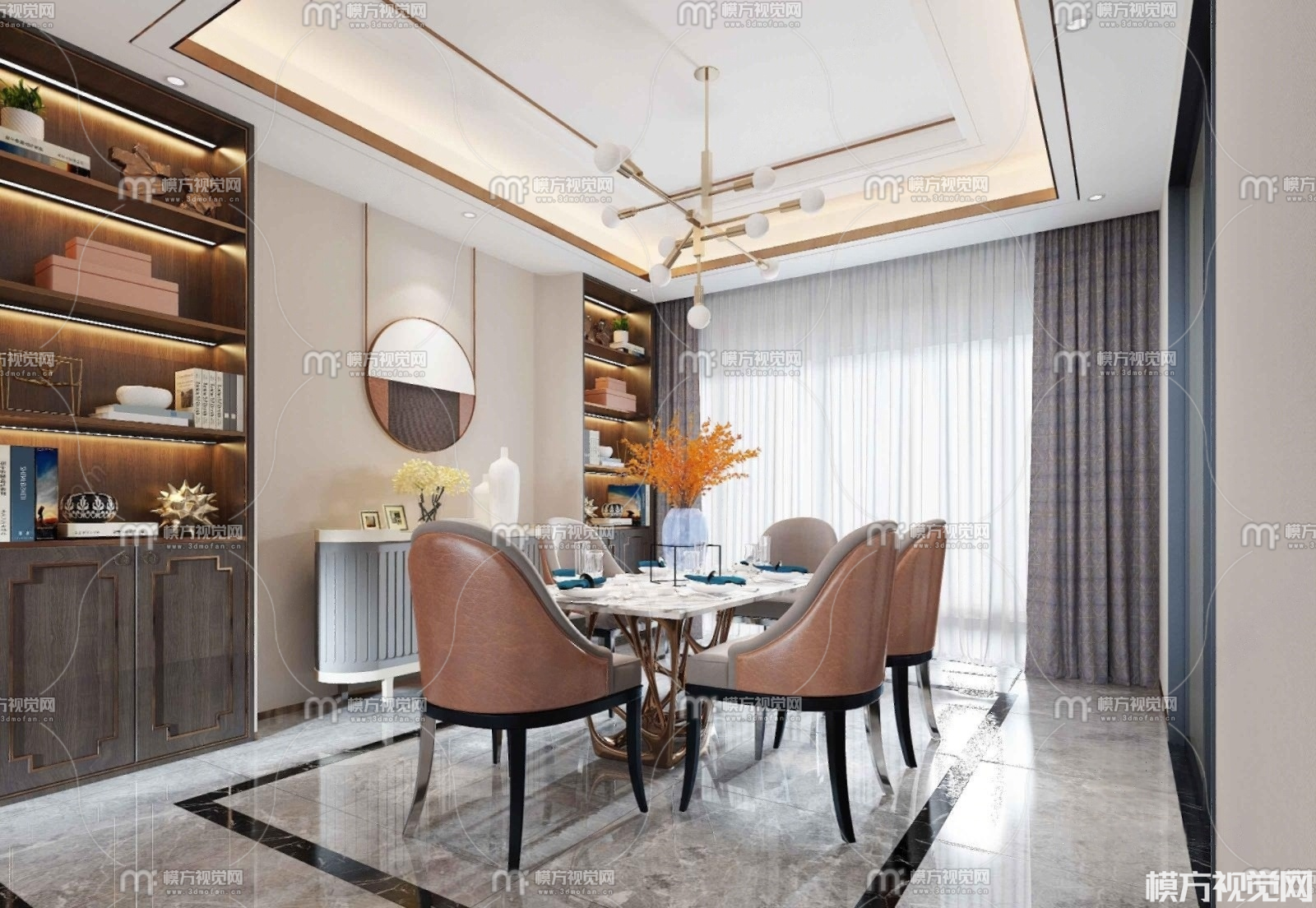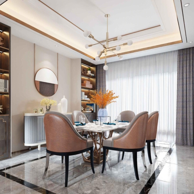 现代轻奢客厅餐厅3D模型(ID:0023860)