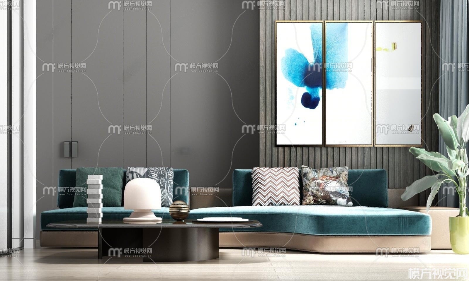 现代轻奢休闲绒布多人沙发3D模型(ID:0023901)