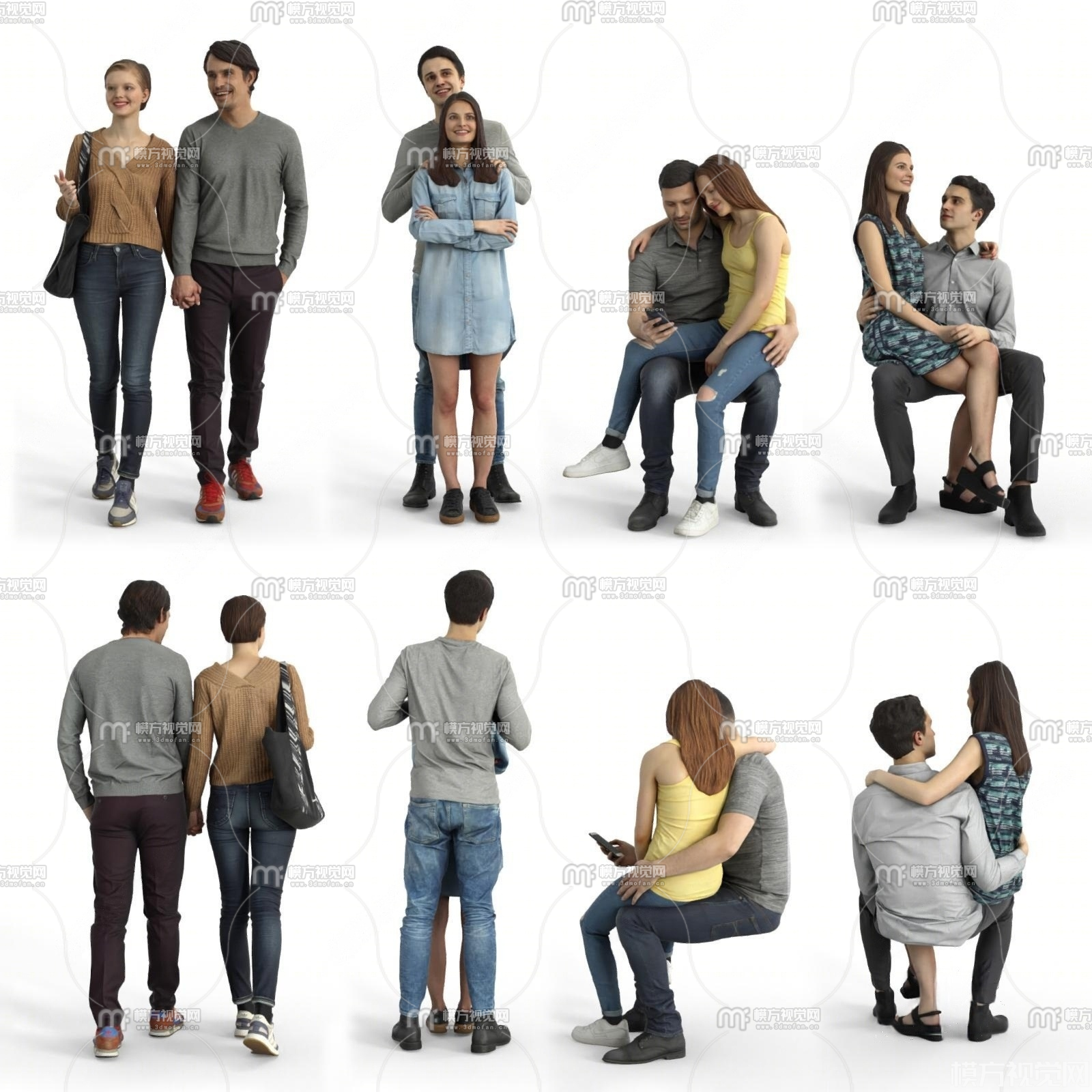 现代情侣男女人人物组合3D模型(ID:0023918)
