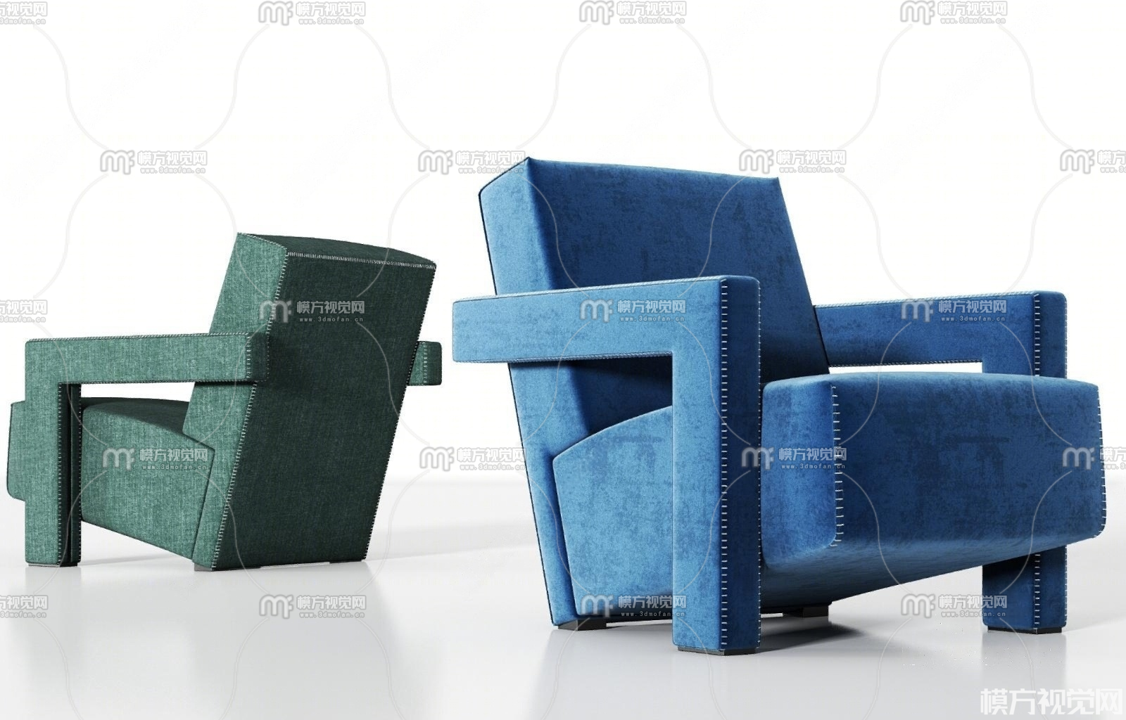 现代绒布单人沙发组合3D模型(ID:0023942)