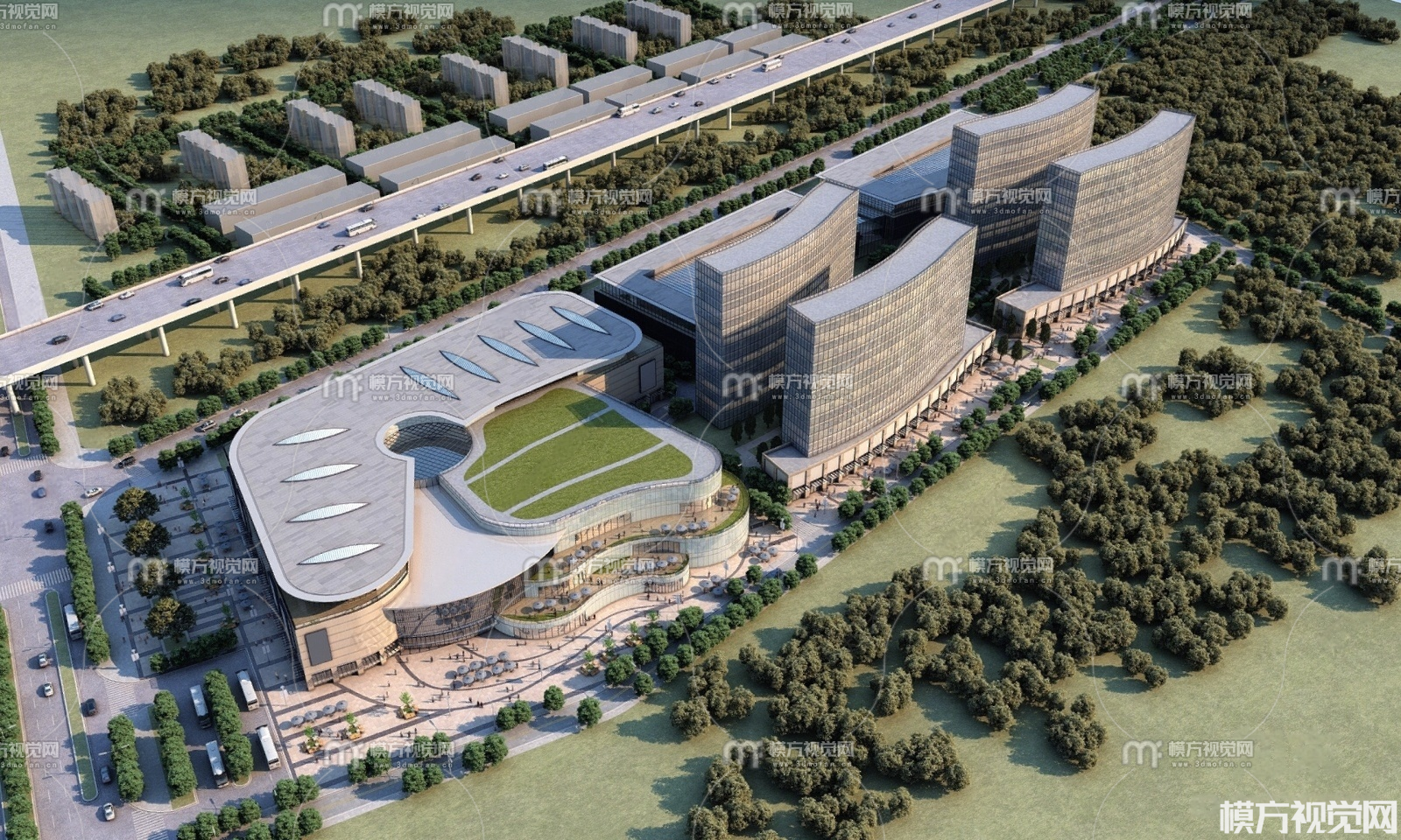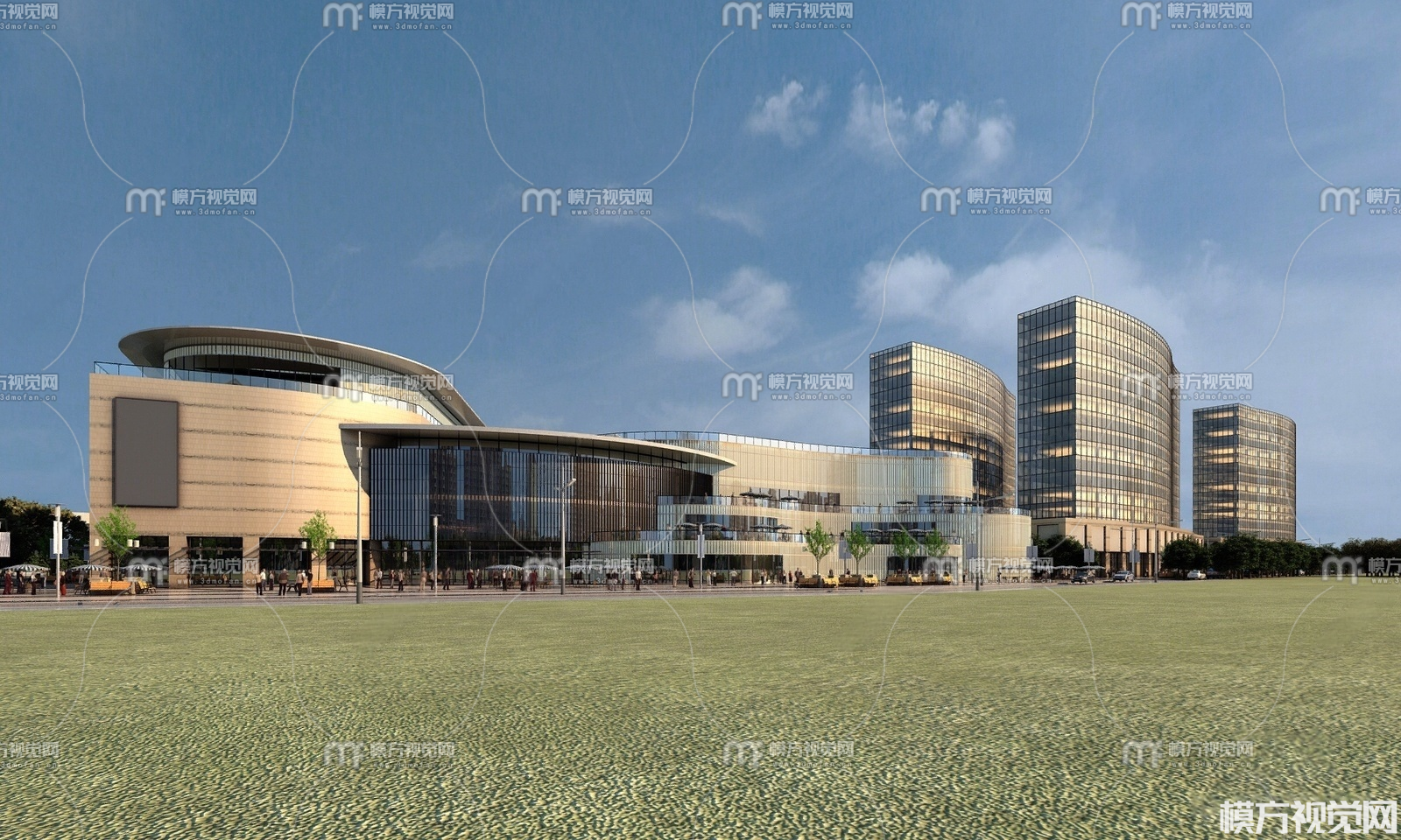 现代商业园区鸟瞰规划3D模型(ID:0023993)