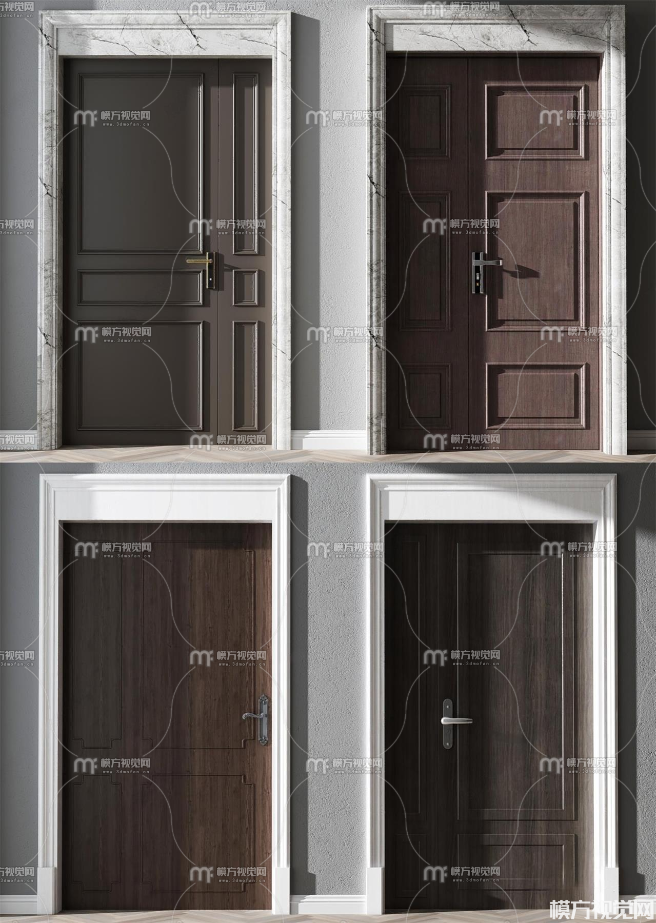 现代实木入户门组合3D模型(ID:0024030)
