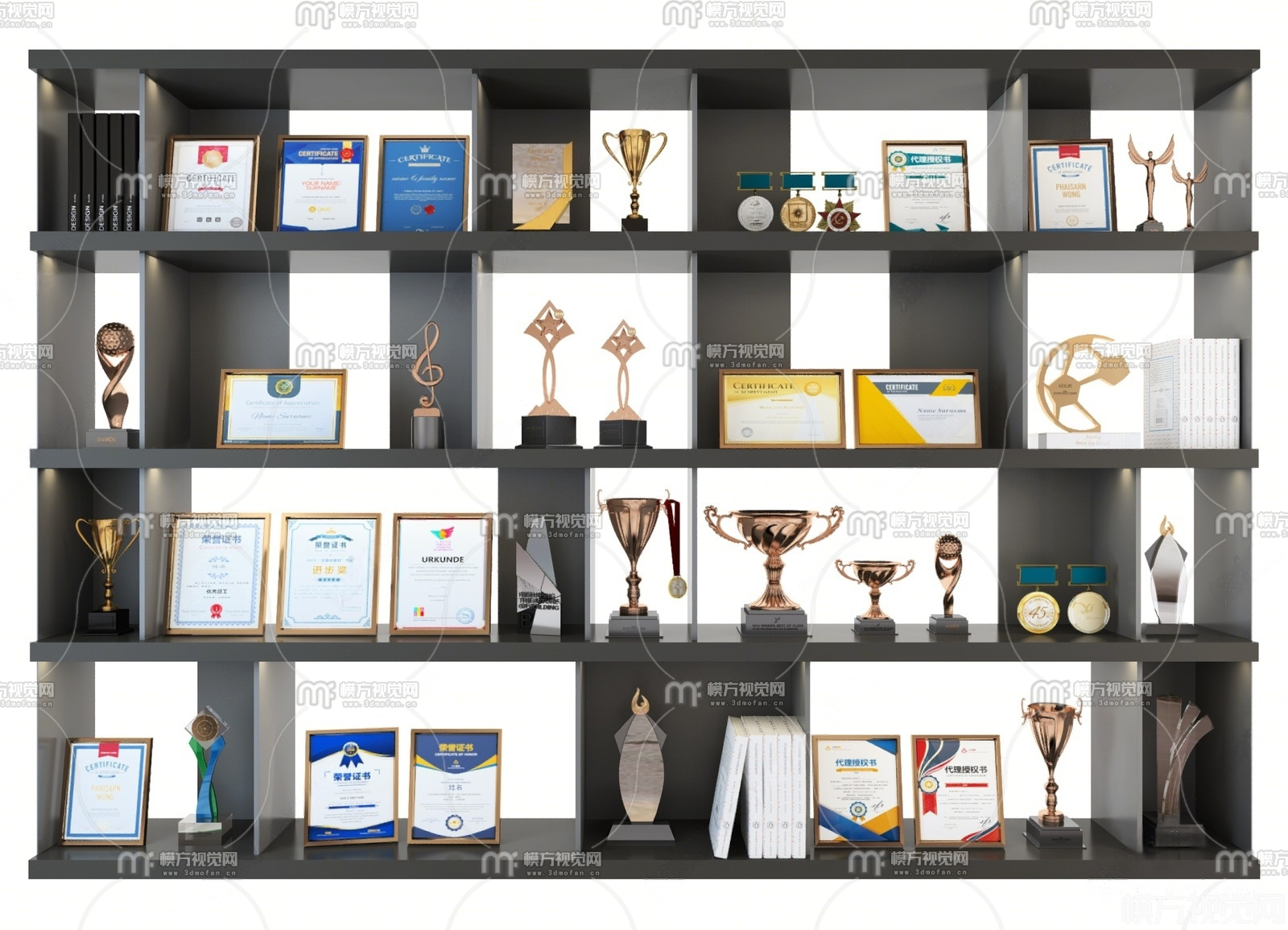 奖牌 奖杯 荣誉证书3D模型(ID:0024064)