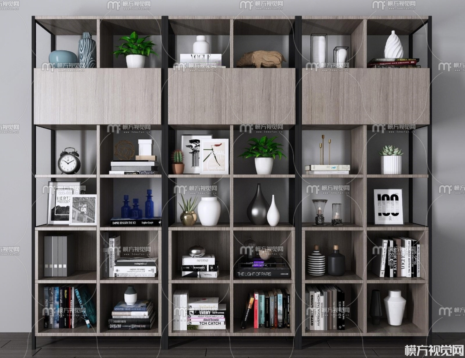 现代书柜组合3D模型(ID:0024113)