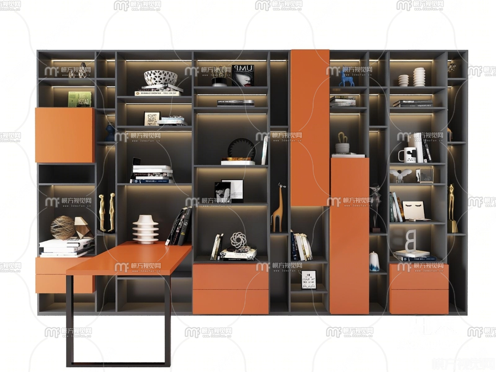 现代书柜组合3D模型(ID:0024117)