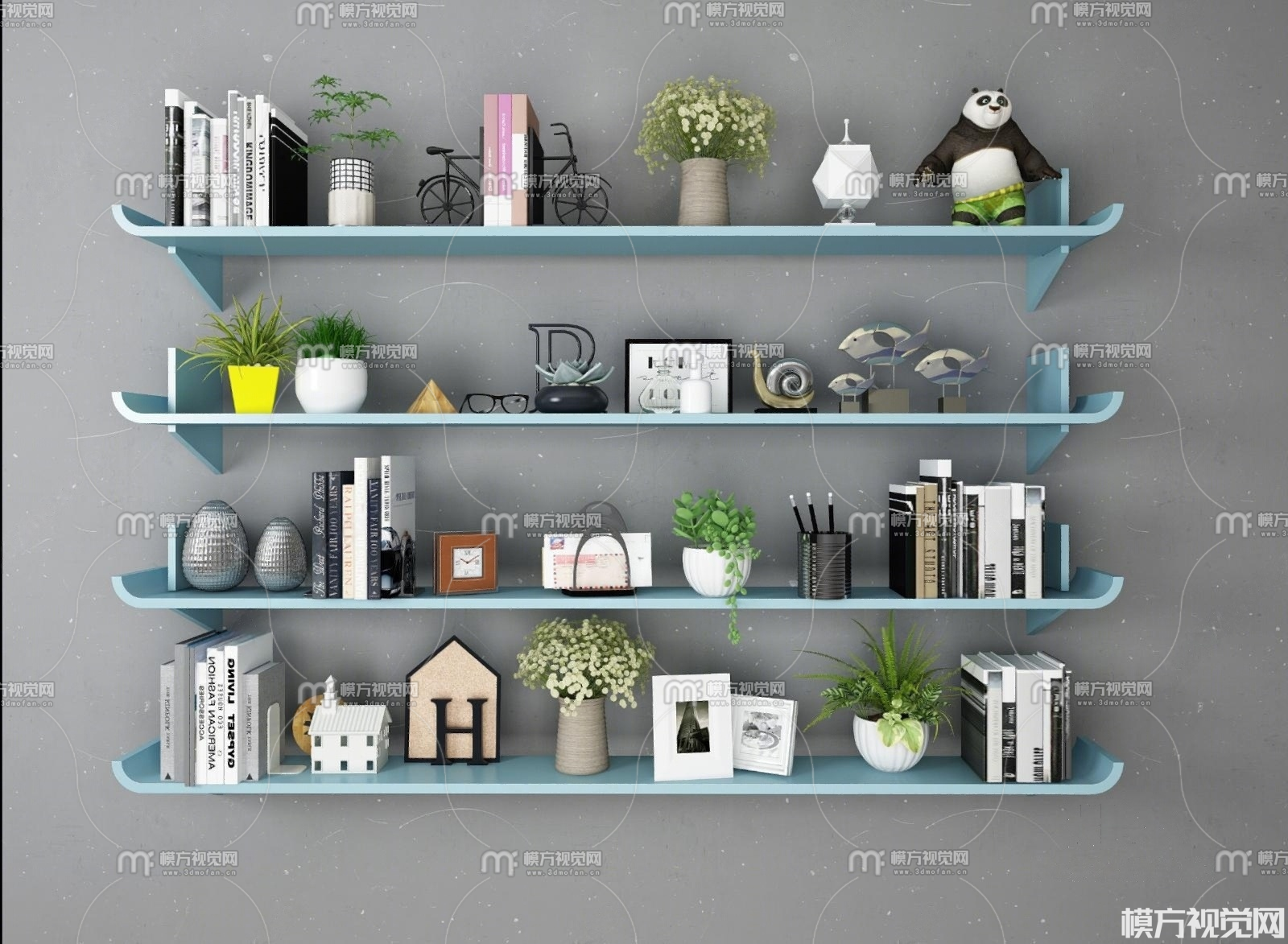 现代书籍盆栽摆件3D模型(ID:0024124)