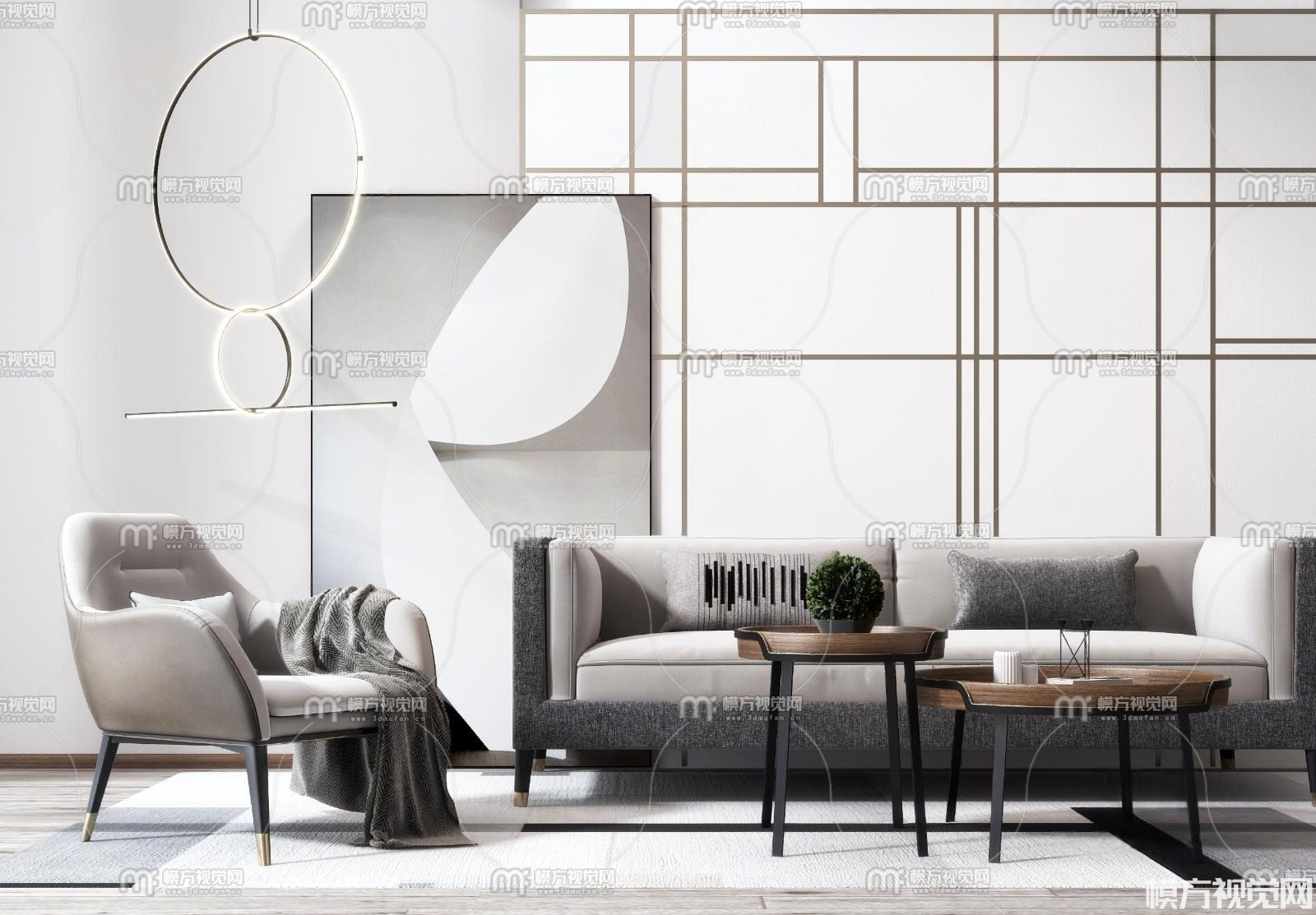 现代双人沙发茶几组合3D模型(ID:0024149)
