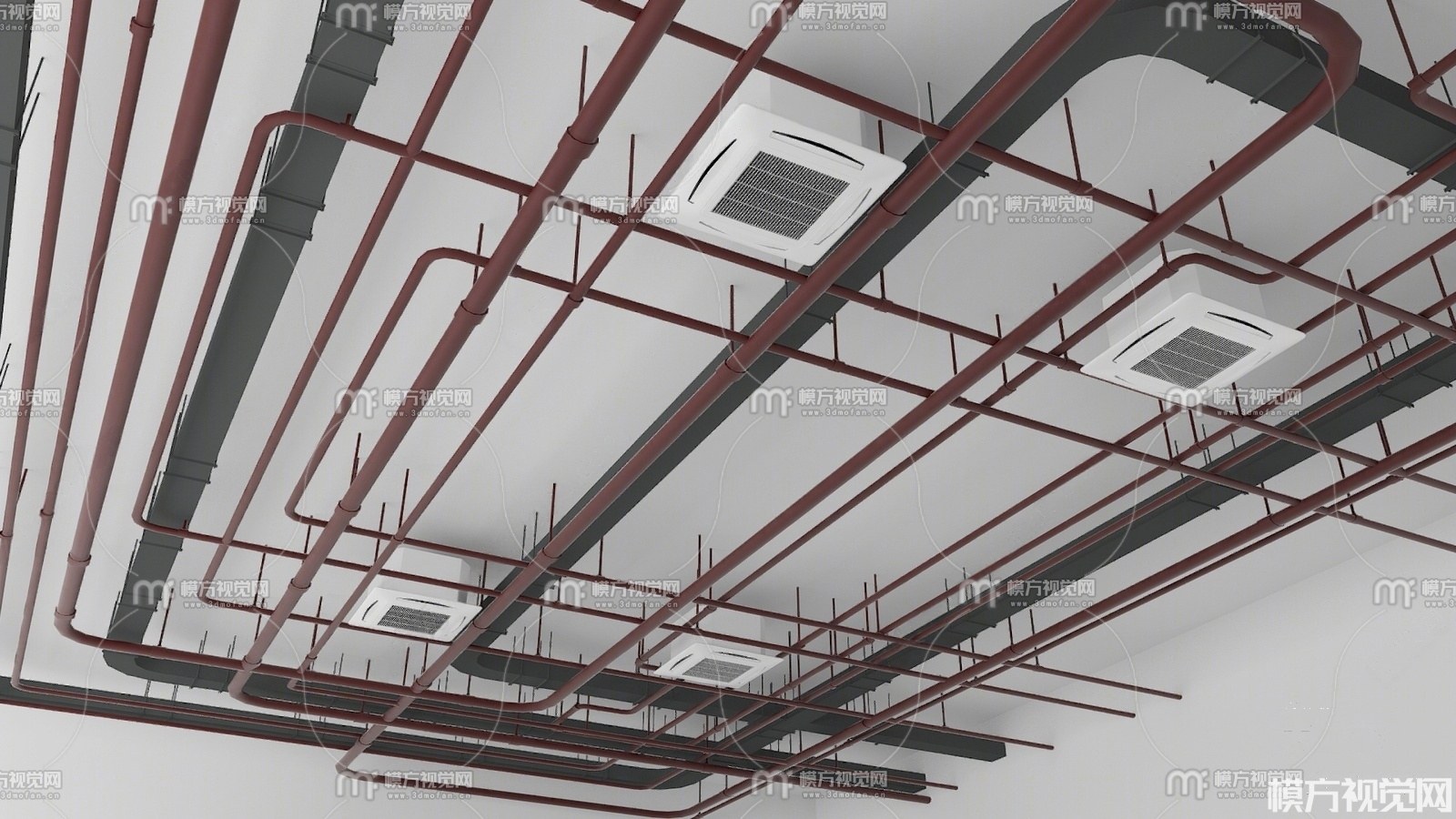 顶面通风管道 消防管道3D模型(ID:0024151)