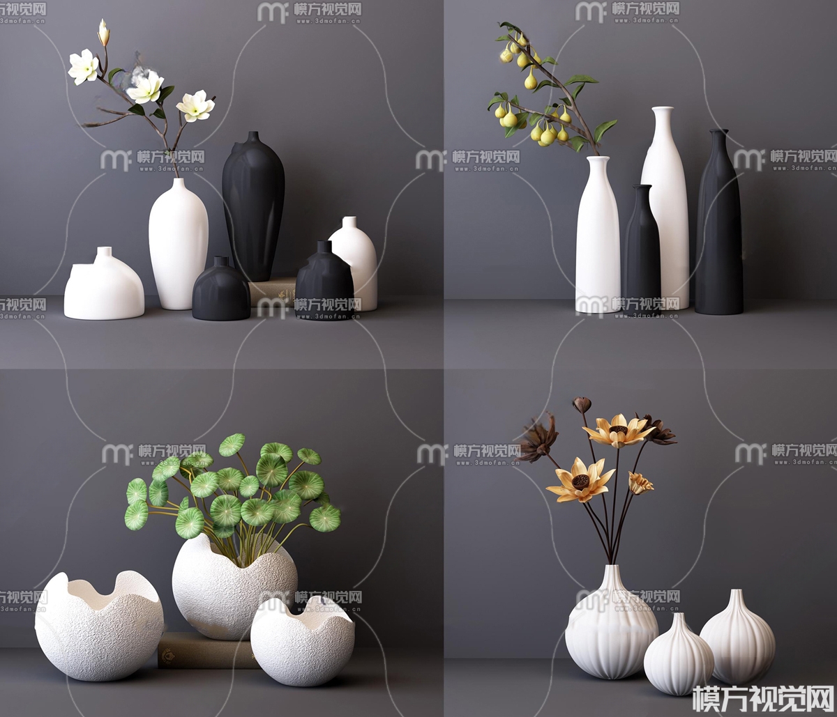 现代陶瓷花瓶花卉组合3D模型(ID:0024206)
