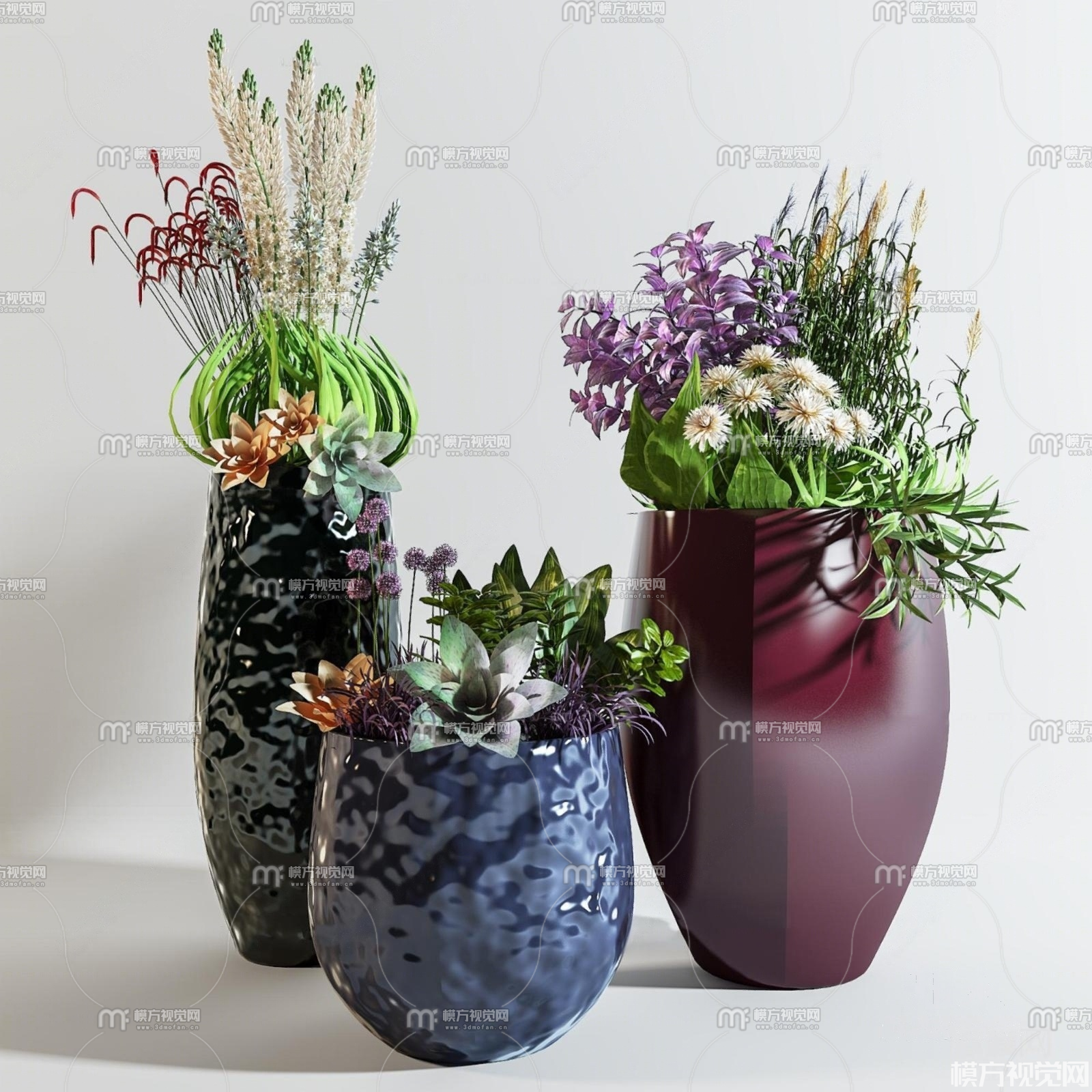 现代陶瓷绿植盆栽组合3D模型(ID:0024209)