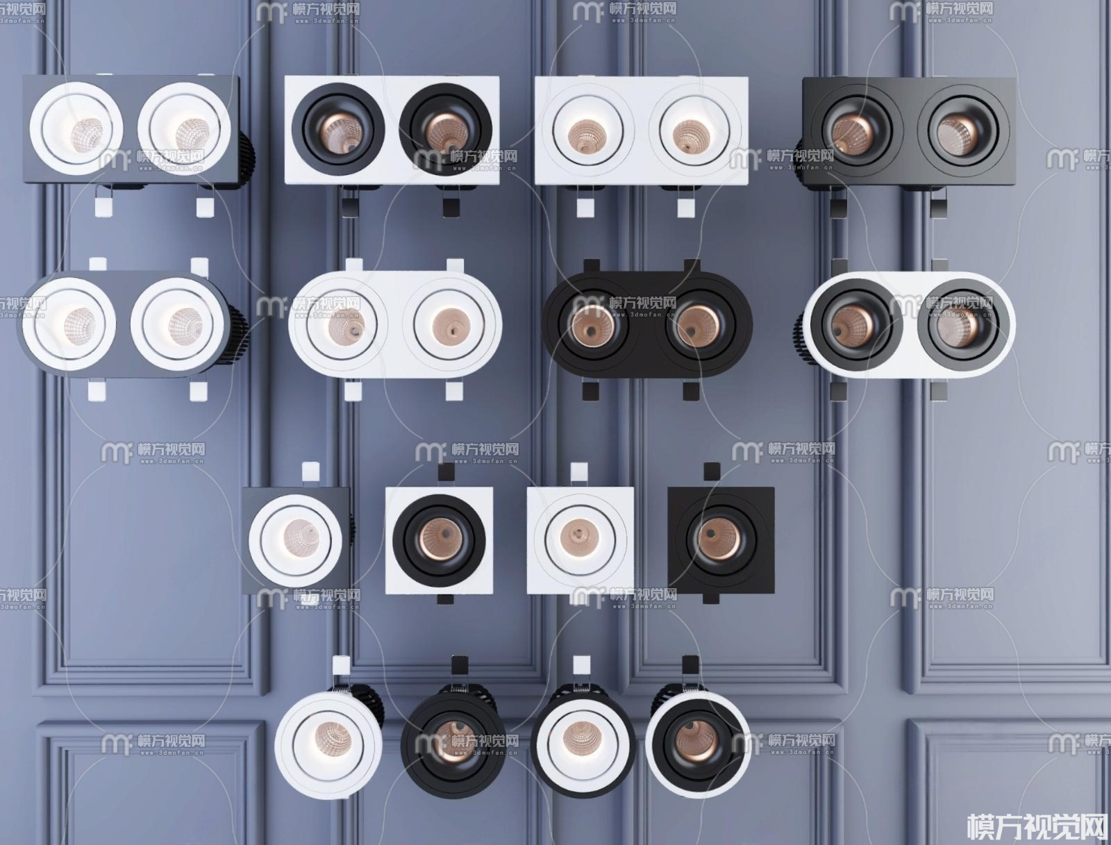 现代筒灯射灯组合3D模型(ID:0024276)