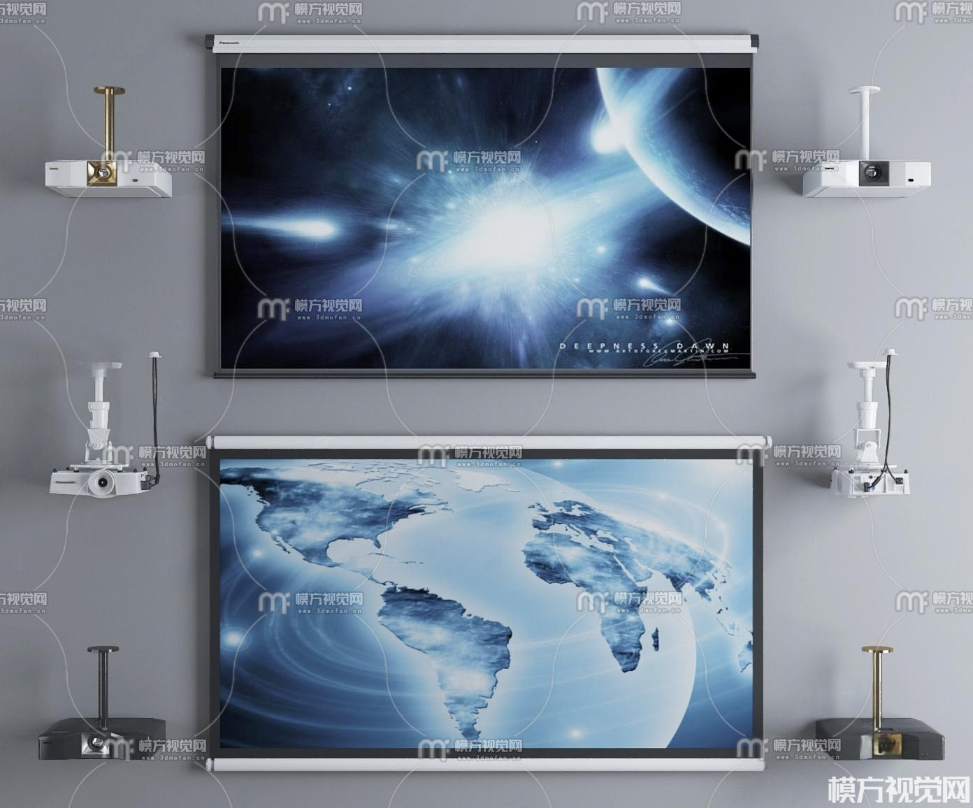 现代投影幕布投影仪组合3D模型(ID:0024280)