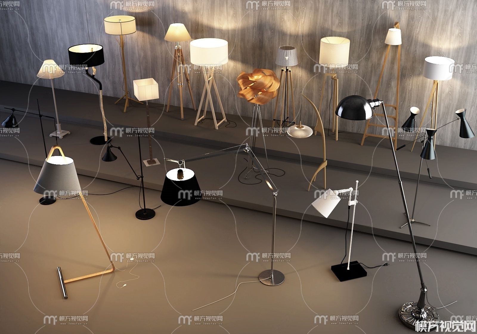 现代铁艺木质落地灯组合3D模型(ID:0000243)