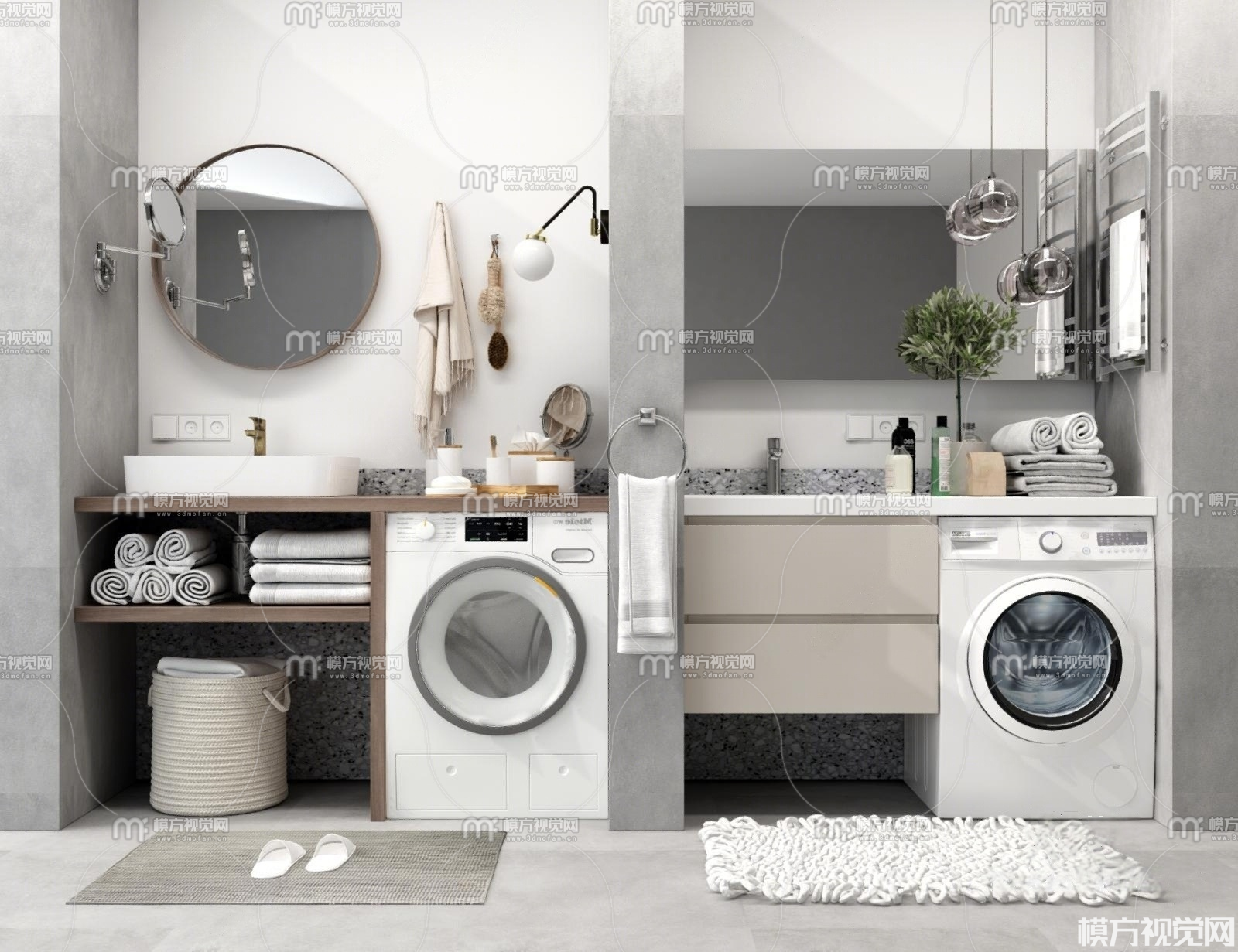 卫生间浴室柜 洗衣机3D模型(ID:0024308)