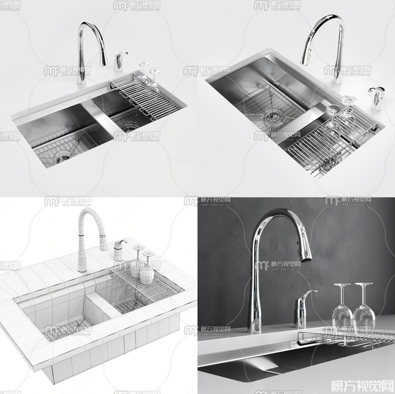 厨房水槽 洗菜盆3D模型(ID:0024378)
