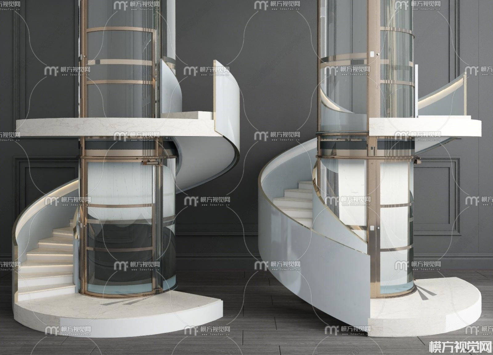 现代旋转楼梯 电梯3D模型(ID:0024451)