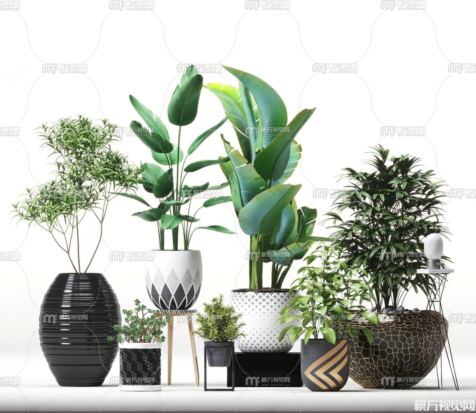 现代植物盆栽组合3D模型(ID:0024632)