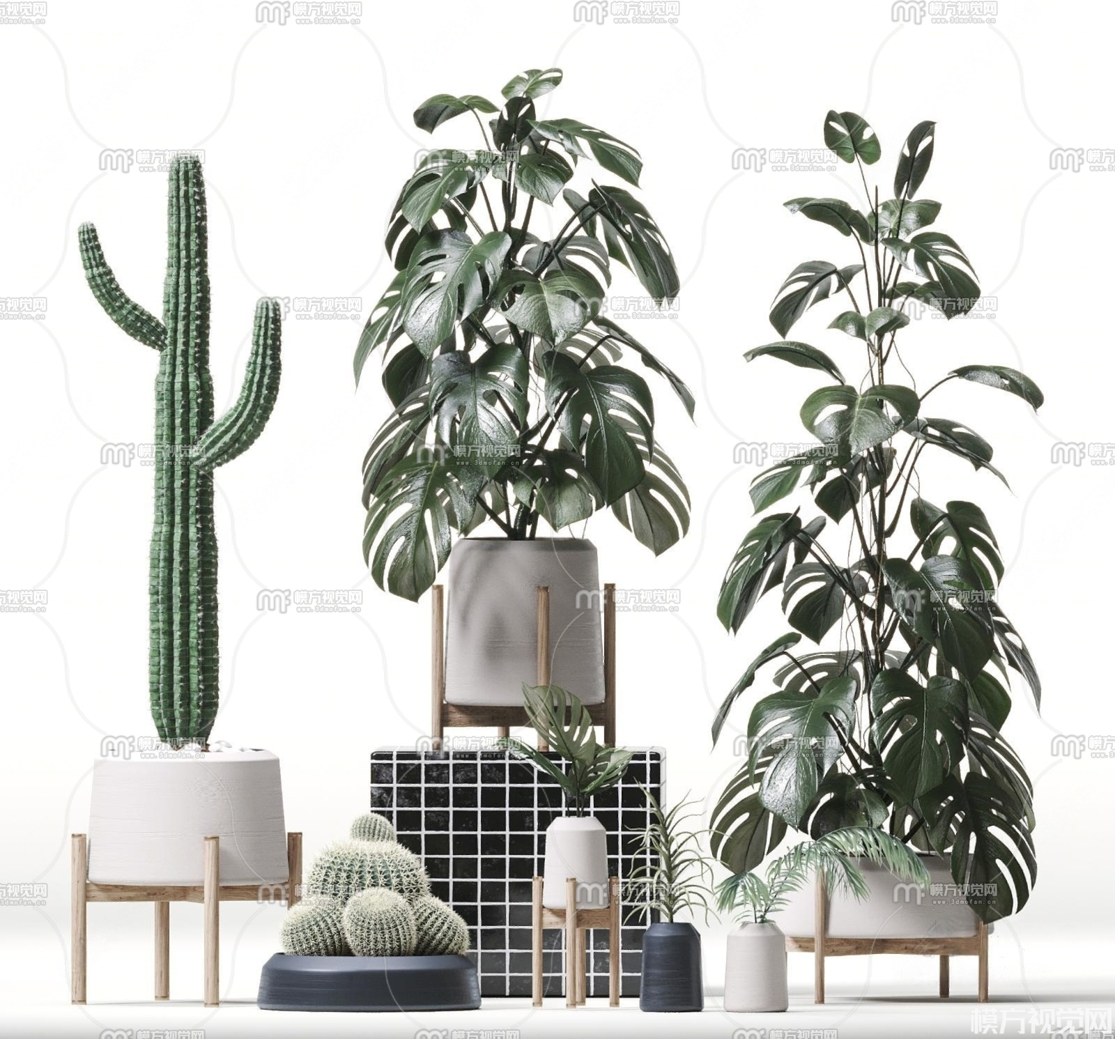 现代植物盆栽组合模型3D模型(ID:0024641)