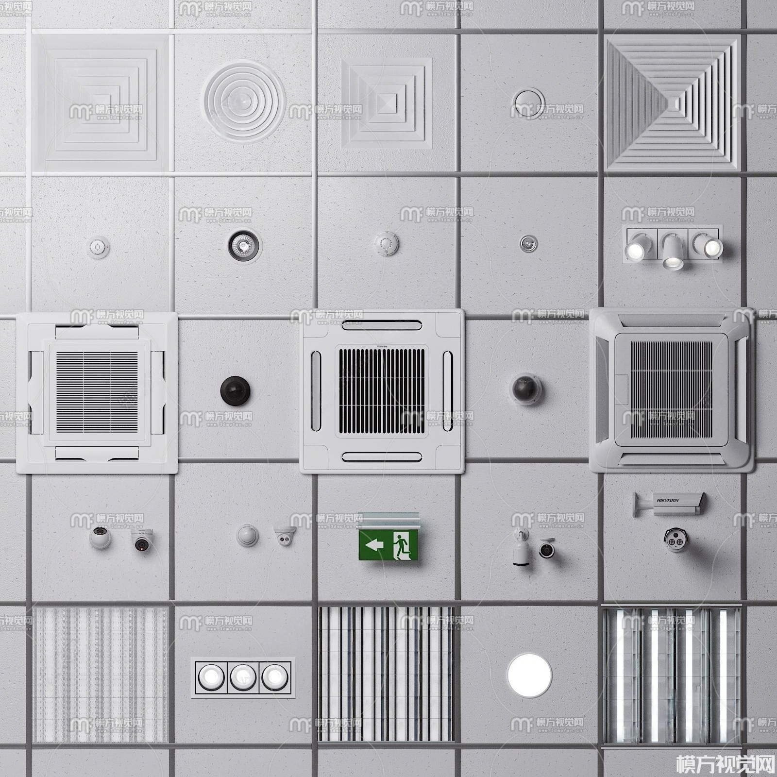 矿棉板吊顶 中央空调 风口 摄像头3D模型(ID:0024652)