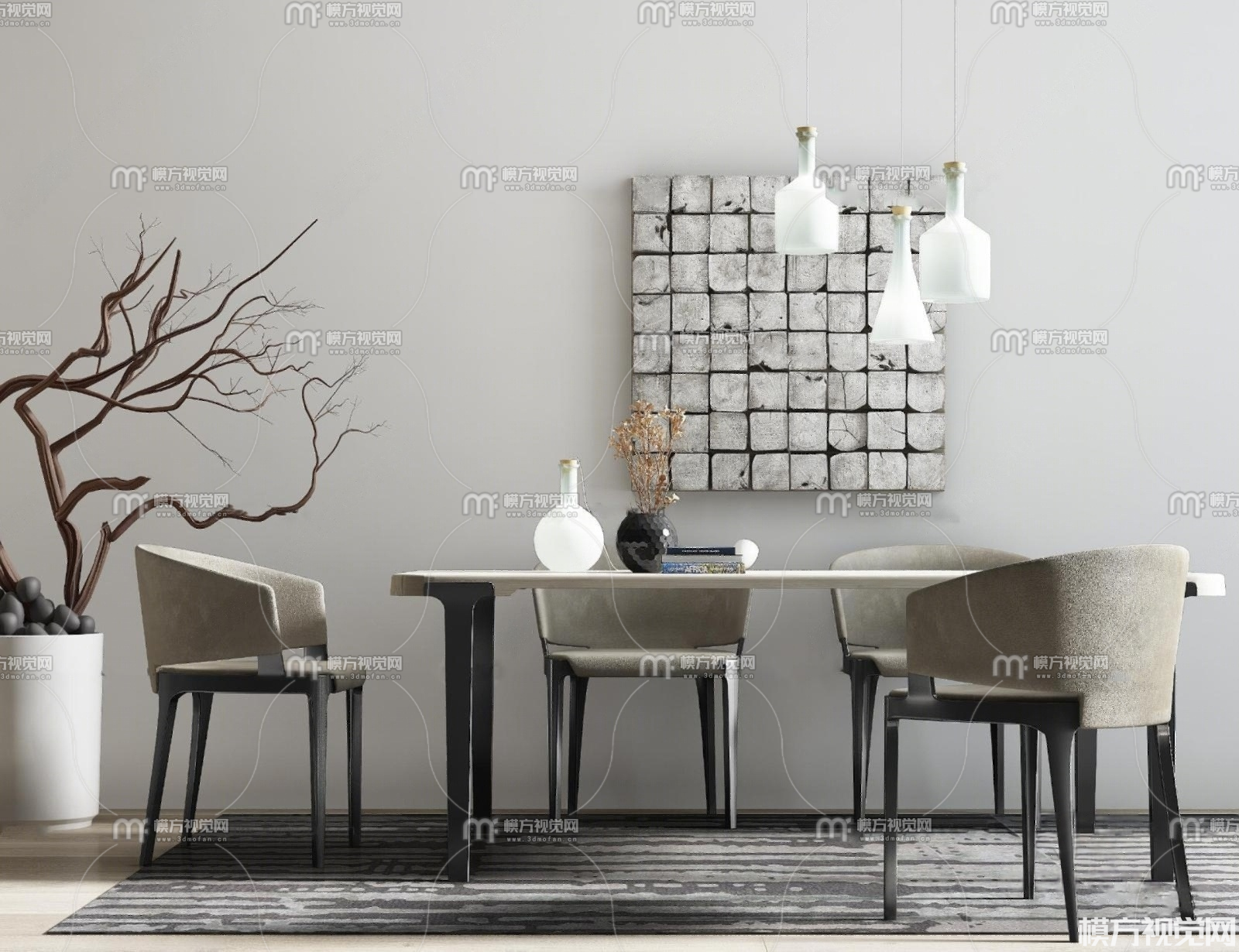 现代桌椅吊灯组合3D模型(ID:0024703)