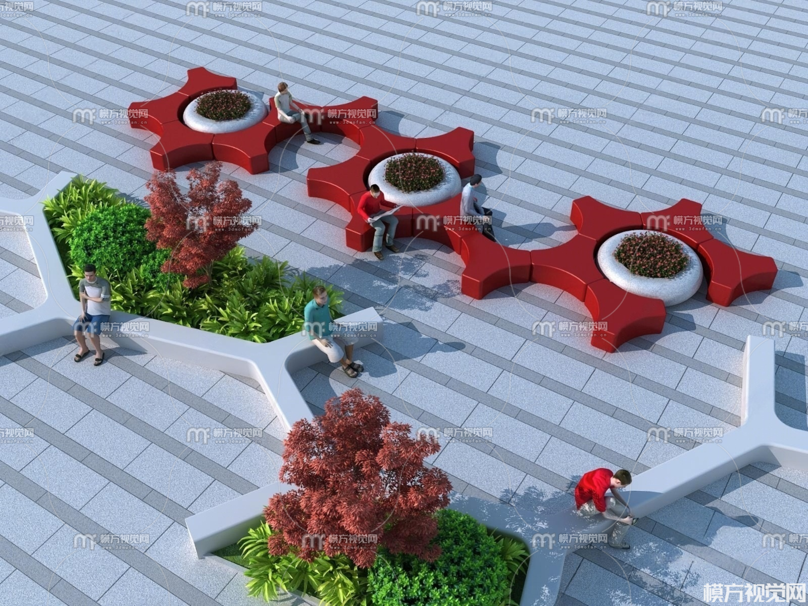 户外公园广场公共座椅 花坛3D模型(ID:0024711)