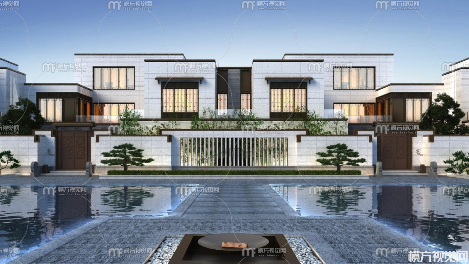 新中式别墅建筑外观3D模型(ID:0024730)
